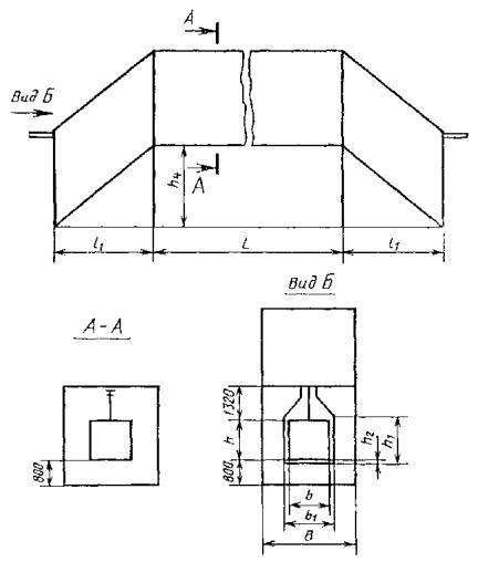 Примечание. h3 - расстояние от верха изделия до потолка установки величина постоянная (1320 мм) и указана на черт. 13 и 14.