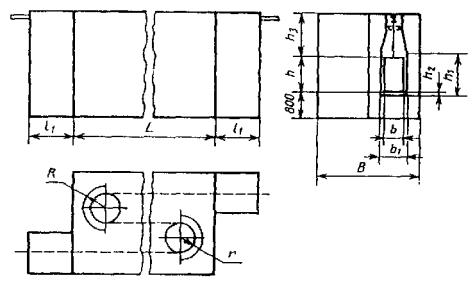 2.12. Размеры конвективных сушильных установок проходных с подвесным толкающим непрерывно движущимся конвейером с тепловым подпором воздуха двухходовых (черт. 15) и трехходовых (черт. 16) должны соответствовать табл. 14.