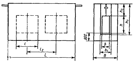 2.10. Размеры конвективных сушильных установок проходных с подвесным толкающим непрерывно движущимся конвейером двухходовых (черт. 11) и трехходовых (черт. 12) должны соответствовать табл. 12.
