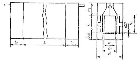 2.11. Размеры конвективных сушильных установок проходных с подвесным непрерывно движущимся конвейером с тепловым подпором воздуха двухходовых (черт. 13) и трехходовых (черт. 14) должны соответствовать табл. 13.