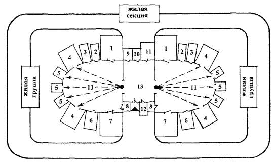 3.9. ЗОШ должна быть полностью рассчитана на использование внутренней инфраструктуры. Его воспитанники не могут посещать обычные общеобразовательные учреждения, учреждения дополнительного образования, учреждения начальной профессиональной подготовки (УПК), культурно-массовые и спортивные, и т.п. Функции этих учреждений должны быть обеспечены в ЗОШ за счет соответственной расширенной номенклатуры помещений.