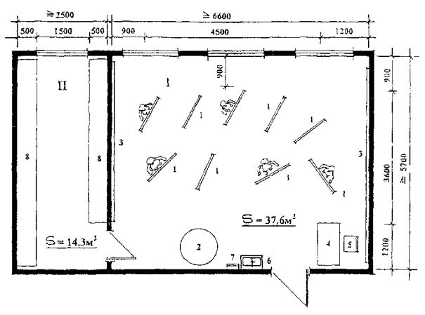 Рис. П.8. Комната музыкальных занятий с кладовой инструментов
