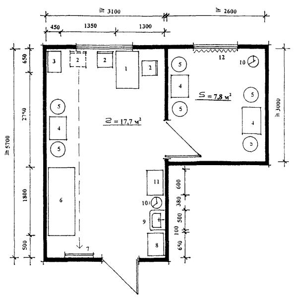 Рис. П.14. Кабинет групповых занятий ЛФК с кладовой и раздевалкой