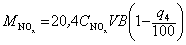 Если имеются данные по содержанию окислов азота в дымовых газах (%), то выброс (кг/год) вычисляется по формуле