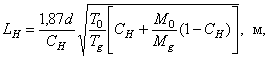 Z - расстояние от центра излучения пламени до верха ствола, м, при m < 0,2 рекомендуется принимать Z = 5D, при m ³ 0,2, определяют по следующим соотношениям: