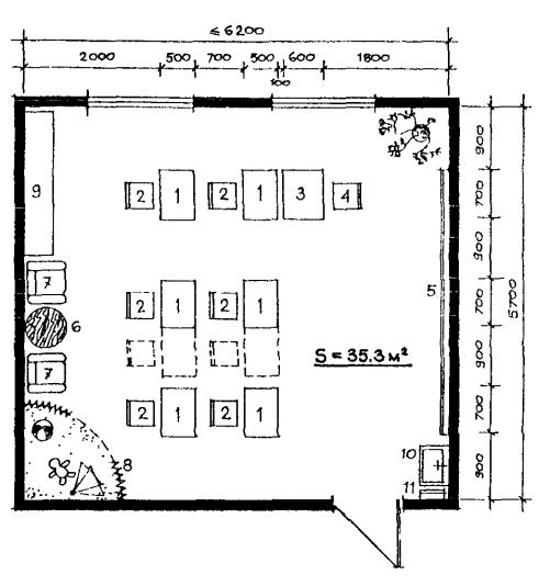 РИС. П-11. КОМНАТА ТИХОГО ОТДЫХА С ЖИВЫМ УГОЛКОМ (ОСНОВНАЯ ШКОЛА)