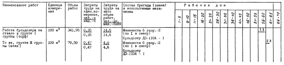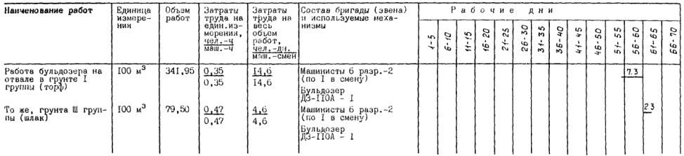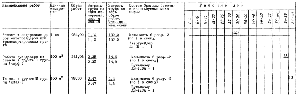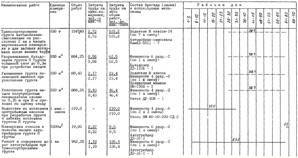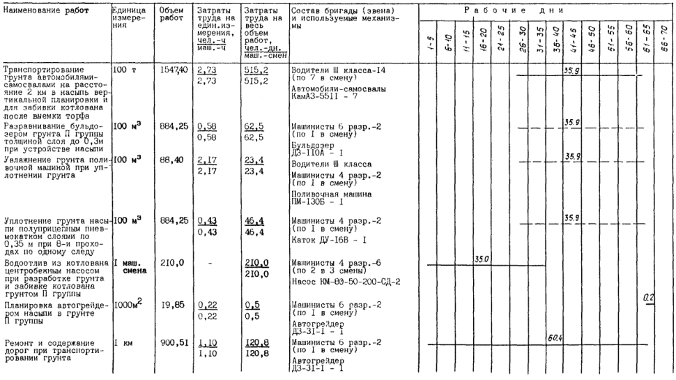 2.7. Замена торфа грунтом II группы и возведение планировочной насыпи выполняется (при работе в каждую смену) для варианта № 1 в следующим составом: