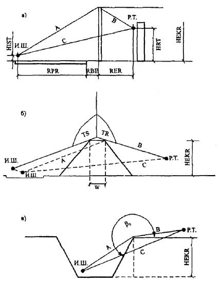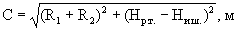 Вначале были рассчитаны вспомогательные расстояния А, В и С: