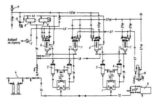 2.6.1. При подготовке к пуску смонтированной адсорбционной осушки водорода с регенерацией сорбента в замкнутом контуре (см. п. 1.5 приложения 1), необходимо провести гидравлические испытания аппаратов и трубопроводов осушки (подогревателя водорода, холодильников, сепараторов, сборников конденсата и осушителей водорода).