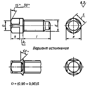 5. Конец винта - ступенчатый со сферой по ГОСТ 12414.