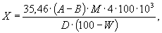 2.1.4.1. Массовую долю хлорид-ионов X в процентах к абсолютно сухой целлюлозе, бумаге или картону вычисляют по формуле