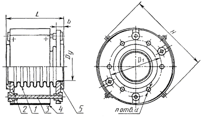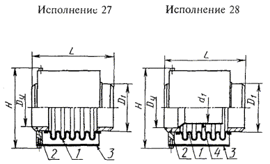 1.2. Основные параметры и размеры компенсаторов и уплотнений в зависимости от проводимых и разделяемых сред, а также конструктивного исполнения должны соответствовать указанным на черт. 1 - 33 и в табл. 1 - 28.