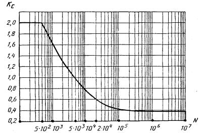 N - наработка, цикл; Кс - коэффициент, учитывающий изменение амплитуд симметричного цикла