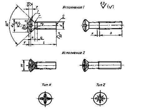 Конструкция и размеры винтов должны соответствовать указанным на рисунке и в таблицах 1 и 2.