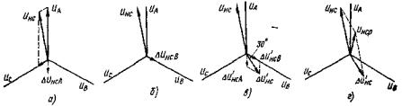 По значению вектора напряжения несимметрии и положению его относительно векторов линейных напряжений определяются необходимость и способ выравнивания емкостей фаз сети.
