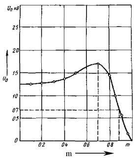 По результатам измерений строится кривая зависимости напряжения смещения нейтрали от настройки дугогасящего реактора, по которой в дальнейшем производится определение емкостного тока замыкания на землю.