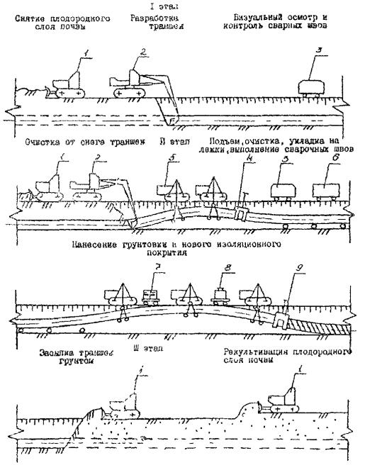замена изоляционного покрытия отдельных участков нефтепроводов.