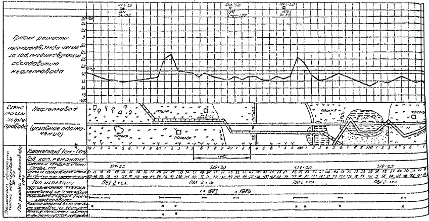 2.6. Анализ статистических данных по коррозионной ситуации на нефтепроводе проводят по проектной и эксплуатационной документации. Характеристика нефтепровода, значения удельного сопротивления грунта (минимальное и максимальное значения на километре), график защитной разности потенциалов «труба-земля» за последний год эксплуатация, обнаруженные сквозные проржавления заносятся в форму 1 прилож. 1.