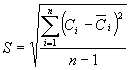 Рассчитывают среднее квадратичное отклонение результата измерения содержания вещества в градуировочном растворе:
