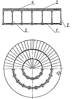 1 - днище; 2 - стенка; 3 - покрытие; 4 - балка; 5 - колонна