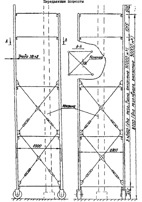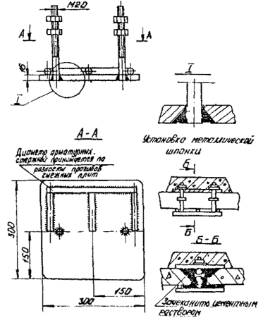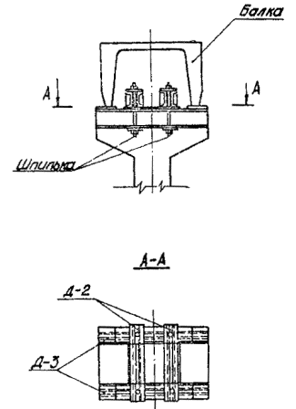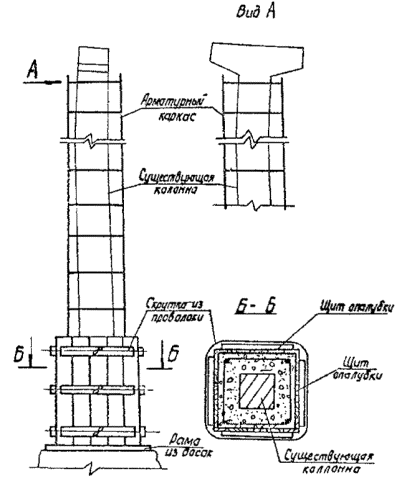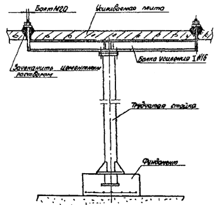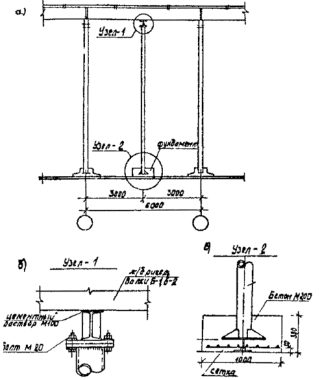 Колонны прямоугольного сечения, в верхней части имеют развитый оголовок, на который опираются балки. Колонны армированы каркасами и стержнями. Фундаменты под колоннами сборные, стаканного типа, армированы арматурой и стержнями.