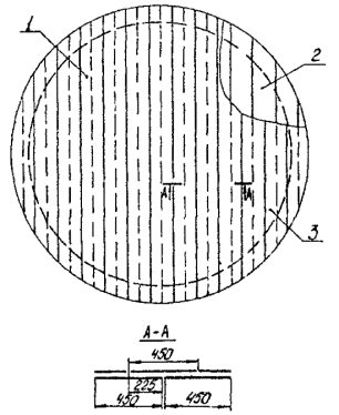 Покрытие резервуара выполнено из плоских сборных плит трапециевидной формы толщиной 120 мм, укладываемых по прямолинейным балкам П-образного сечения. В центре покрытия резервуара расположена центральная плита диаметром 6,7 м, состоящая из двух половин и опирающаяся на 4 колонны. Плиты и балки изготовлены из бетона М-300 повышенной плотности. Они армированы предварительно напряженной арматурой и сварными сетками. Швы между плитами замоноличены бетоном. Поверх покрытия уложена стяжка из бетона толщиной 40 мм.
