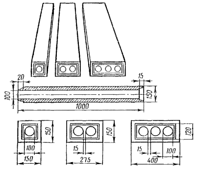 2.2.5. Бетонные трубы изготавливают прямоугольной формы с круглыми каналами диаметром 100 мм и длиной 1 м. Трубы могут изготавливаться одно-, двух-, трехотверстными, в перспективе до 12 отверстий (каналов) включительно.