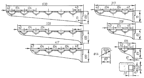 Примечания для таблиц 1, 2 и 3: 1. Расчет произведен на глубину траншеи до подошвы бетонных труб. 2. При глубине траншеи ниже подошвы труб необходимо оставить распоры в траншее ниже телефонной канализации по 3 - 4 м в каждую сторону. 3. Если распоры не оставлены, необходимо вычислить длину подвески с учетом осадки краев траншеи до угла естественного откоса, принимаемого равным 45°, согласно формуле L = l + 2a, где L - необходимая длина подвески, l - ширина траншеи, a - углубление траншеи ниже подошвы телефонной канализации. 4. Под концы стальных балок необходимо подкладывать отрезки досок на ширину труб.
