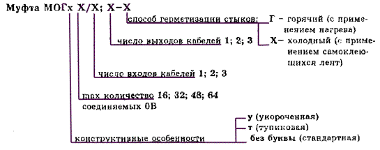 Для монтажа оптических кабелей (ОК) местных сетей связи в колодцах кабельной канализации и в городских коллекторах используются городские оптические муфты типа МОГ - соединительные МОГ и разветвительные МОГР стандартной длины, укороченные - МОГу и тупиковые - МОГт (ТУ 5296-006-27564371-96), сертификат соответствия ОС/1-ОК-25. Для монтажа ОК местных сетей в котлованах используются муфты МОГу или МОГт в защитных кожухах или магистральные муфты типов МТОК (ТУ 5296-007-27564371-95), сертификат соответствия ОС/1-ОК-26 и ММЗОК (ТУ 45-93 АХПО.446.007 ТУ), сертификат соответствия ОС/1-ОК-32.