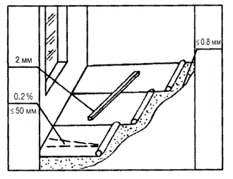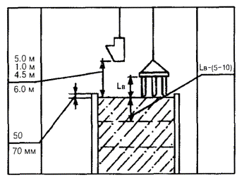 Расстояние горизонтально проложенных проводов от плит перекрытия не должно превышать - 150 мм.