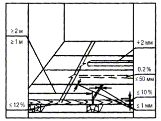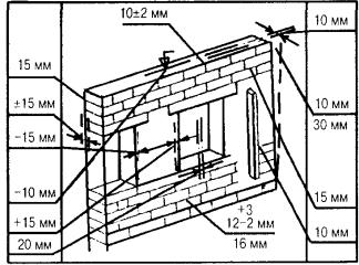 - размеров проходных сечений каналов и замоноличенных неметаллических труб - ±15 %;