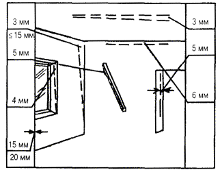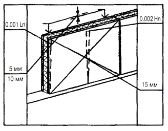 - смещений гнезд и ниш в местах сопряжений смежных строительных конструкций - 40 мм.