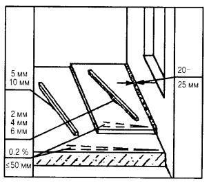 в конструкциях толщиной свыше 80 мм - по кратчайшим трассам.