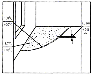 - при наклейке - температура при нанесении горячих мастик, °С: