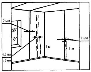 При скрытой прокладке под слоем штукатурки или в тонкостенных (до 80 мм) перегородках провода должны быть проложены параллельно архитектурно-строительным линиям;