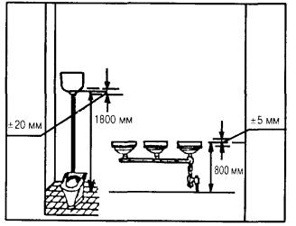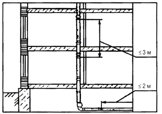 - при верхней разводке - на высоте 1,5-1,6 м от пола;