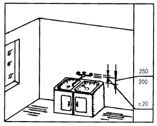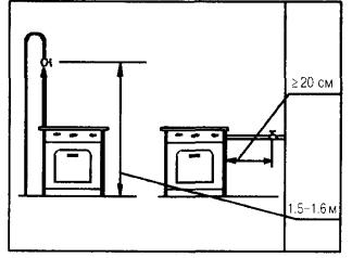 - при горизонтальной подводке газопровода к плите - на расстоянии не менее 20 см с боку от плиты;