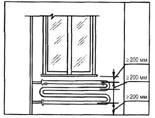 Расстояние между осями смежных труб должно быть не менее 200 мм.