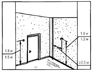 - в школах и.детских учреждениях - 1,8 м от пола;