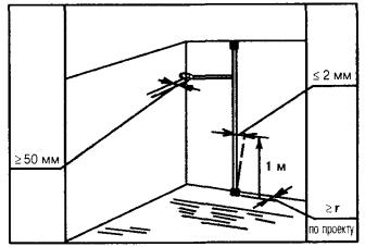 При отсутствии в проекте этих данных расстояние должно быть не менее радиуса трубы (r).