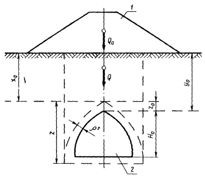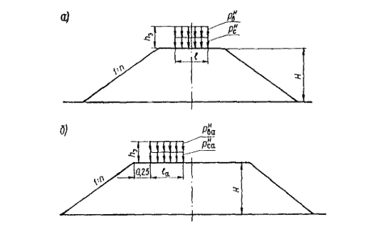 1.12. Воздействие на земляное полотно временной нагрузки, веса верхнего строения пути железных дорог и дорожной одежды, автомобильных дорог учитывается посредством введения в расчет условного слоя высотами hз и hза, определяемыми по формулам: