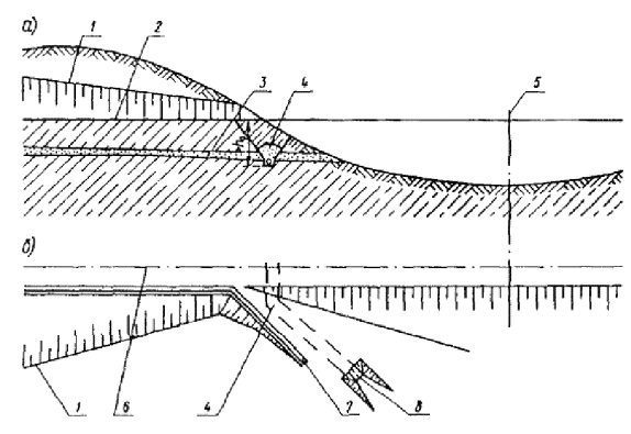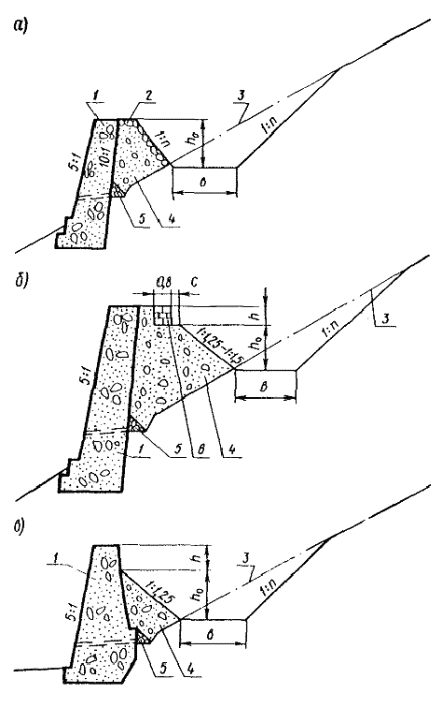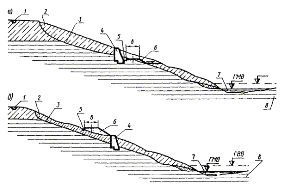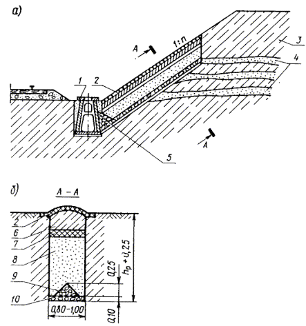Представляется план и поперечные сечения сооружений. Способы укрепления откосов, подверженных воздействию воды, должны быть обоснованы расчетом, а в сложных случаях - моделированием, с использованием расчетных характеристик по данным литературных источников и нормативных документов |