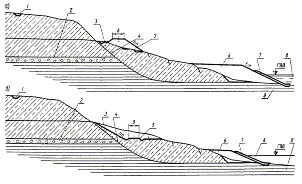 обоснованный выбор мероприятий по обеспечению устойчивости откосов земляного полотна типовой конструкции, если по расчету они окажутся неустойчивыми;