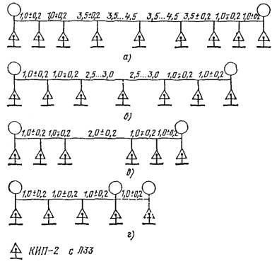 Рис 2. Размещение КИП-2 и ЛЗЗ на усилительных участках длиной, км: