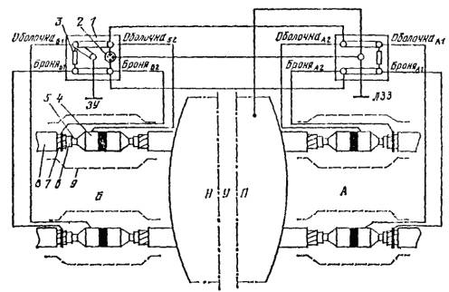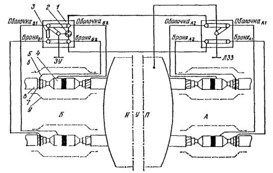 Рис. 1. Схема соединений кабеля, имеющего изолирующие покровы типов БпШп, с ЛЗЗ: