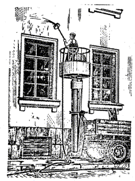 Щетинная щетка для промывки фасадов зданий. Щетка в оправе крепится к рукоятке, внутри которой помещена латунная трубка, через которую по шлангу из домового водопровода подается вода. |
