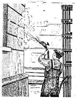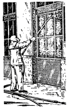 Рис. 1. Промывка фасада водой с применением щетинной щетки конструкции ЛНИИ АКХ.