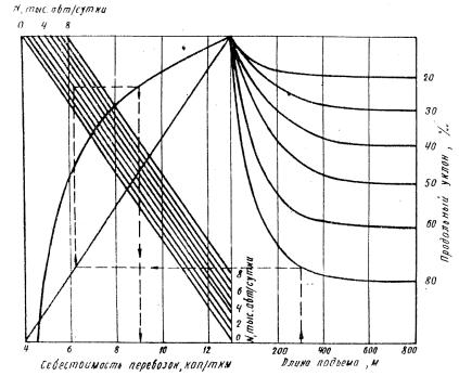 Рис.1. Номограмма для определения себестоимости перевозок на подъемах