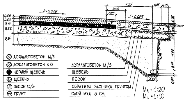 Аналогичная таблица составляется для конструктивных слоев укрепленных обочин и отмостки.