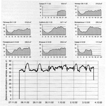 - снижение подачи воды и напоров в сети в ночное время суток;